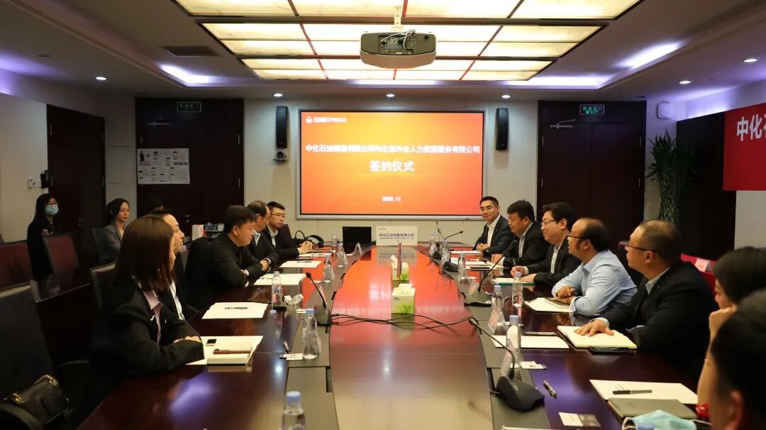 ▲签约现场 北京外企人力资源服务有限公司党委副书记、董事、总经理郝杰,业务总监、第一事业部总经理曹联华,战略咨询部总经理曹志远、投资合作部投资顾问韩霜,中化石油销售有限公司党委书记、总经理张驰,党委委员、财务总监杨汉剑,副总经理张俊海,人力资源部总经理赵欣,企业管理部副总经理王芳,中化方胜能源管理服务有限公司(筹)总经理孟晓曦、副总经理孟凡军等出席签约仪式。本次签约仪式由孟晓曦主持。 ▲FESCO党委副书记、董事、总经理郝杰(左)与中化石油销售有限公司党委书记、总经理张驰(右)签约 中化石油销售有限公司党委书记、总经理张驰,北京外企人力资源服务有限公司党委副书记、董事、总经理郝杰,代表双方签署合资协议。 签约仪式上,中化石油销售有限公司副总经理张俊海和北京外企人力资源服务有限公司财务总监邓同钰分别致辞。 ▲中化石油销售有限公司副总经理张俊海 张俊海总表示,FESCO的“科学发展”核心理念,与中化集团推崇的“科学至上”价值理念不谋而合。合资公司的成立,是双方携手共赢的新起点,是深化国有企业改革、加强央地合作的创新实践,对双方乃至行业有着重要的意义。 目前,能源行业面临着严峻的市场挑战和前所未有的变革机遇,中化方胜能源管理服务有限公司是建立在市场化管理理念基础上、以提升企业管理效率和激发内部活力为目的,为中化石油销售“自营+平台+服务”战略实施提供强有力支撑的关键。 中化石油销售与FESCO的“跨界”合作,能够形成资源、平台、技术等优势互补。双方的深度合作,是对能源行业提供专业化管理服务的全新探索与创新,期待未来双方发挥各自优势,持续投入相关资源,拓宽合作空间,发挥出“1+1>2”的合作效果。衷心希望中化方胜能源管理服务有限公司能够发展成为央地合作的典范、能源管理行业专业化服务的标杆,最终实现股东双方共赢发展。 ▲FESCO财务总监邓同钰 邓同钰总在致辞中表示,今天的签约仪式,标志着双方合作进入深度融合、协作共赢的全新阶段。从产业融合角度看,此次双方合资成立中化方胜能源管理服务有限公司,既符合国家政策与导向,又充分符合市场化发展需求,对股东双方都有十分重要的意义。 双方将依托现有丰富资源及各自领域专业能力,有效提高石油销售行业的用工水平,加速石油化工行业企业的人力资源外包进程,最终实现资源优势互补,开辟潜力巨大的细分市场外包业务,打造能源行业领先的以人力资源服务为基础的全国性专业化管服公司。 邓同钰总表示,此次合作不仅是双方在业务领域的强强联手,也是合作双方在企业文化、人才交流等领域的一次难得机遇。此次合作是一个良好的开端,期待双方在今后的发展道路上携手共进,共同谱写石油化工行业人力资源管理服务的新篇章! ▲共同观看企业文化视频 FESCO是中国第一家人力资源服务机构,中国企业500强。作为中国领先的人力资源综合解决方案提供商,FESCO目前服务于4万家客户、400万中外人才,建立了230余家投资公司及分公司,服务覆盖全国31个省市自治区的400余座城市。 中化石油销售自2018年开拓轻资产业务以来,持续探索实施油站经营与现场管理分离的模式,随着公司2019年“自营+平台+服务”战略的确立,在总结江西先行先试经验的基础上,最终确定由中化石油销售本部牵头成立专业化以人力资源为基础的管理服务公司。 历时半年,在中化石油销售与FESCO各级领导高度重视与支持下,共同就能源行业提供专业人力资源管理服务进行持续深入探索并最终形成一致共识。 ▲与会人员合影 未来,双方将以 中化方胜能源管理服务有限公司为起点 向打造能源行业领先的以人力资源为基础的 全国性专业化管服公司迈进 为中化内外客户提供更优质、专业、全面的服务 优势互补,强强联合 共同拼搏,聚力创新 共创高质量发展的美好未来!